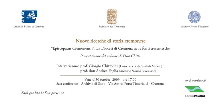 Episcopatus Cremonensis La Diocesi di Cremona nelle fonti trecentesche