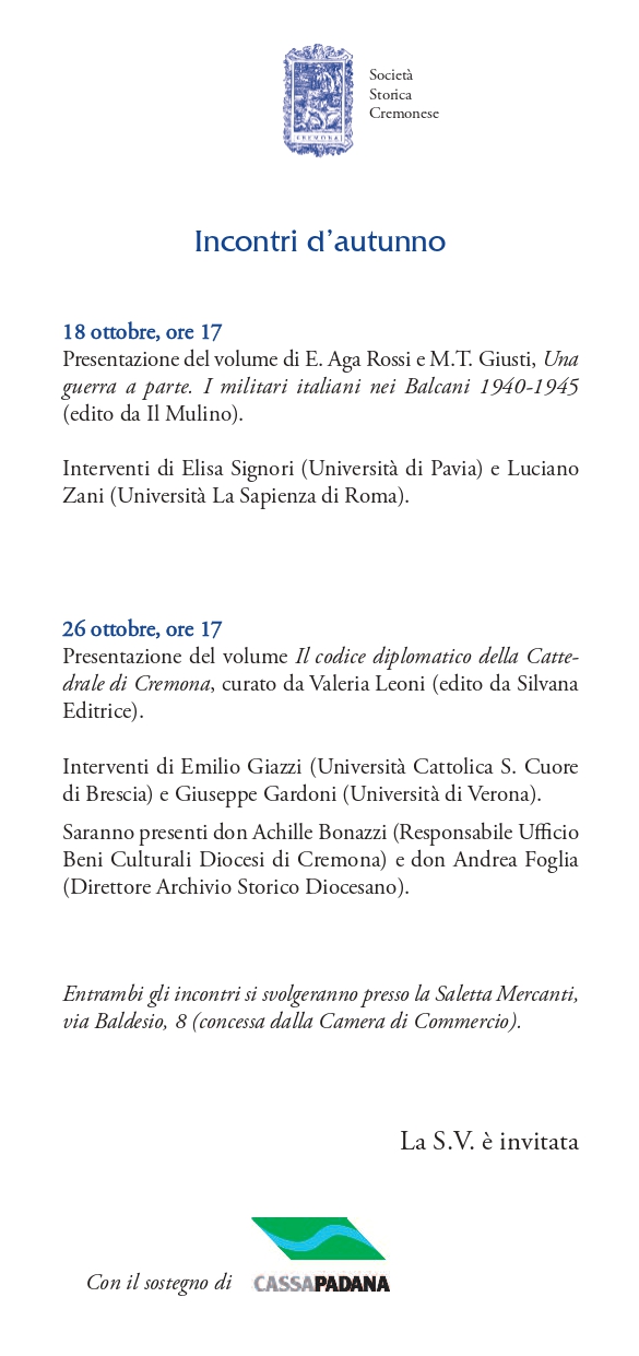 Una guerra a parte. I militari italiani ei Balcani 1940 – 1945 – Il codice diplomatico della Cattedrale di Cremona